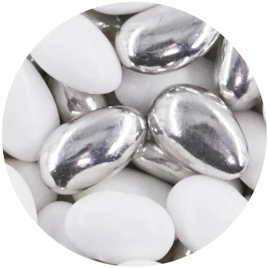 1kg Hochzeitsmandeln Conchiglia Mix weiss-silber metallic matt
