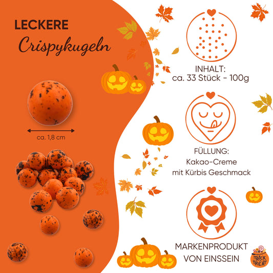 5 Stück fertige Gastgeschenke Halloween Crispykugeln Pumpkin spicy
