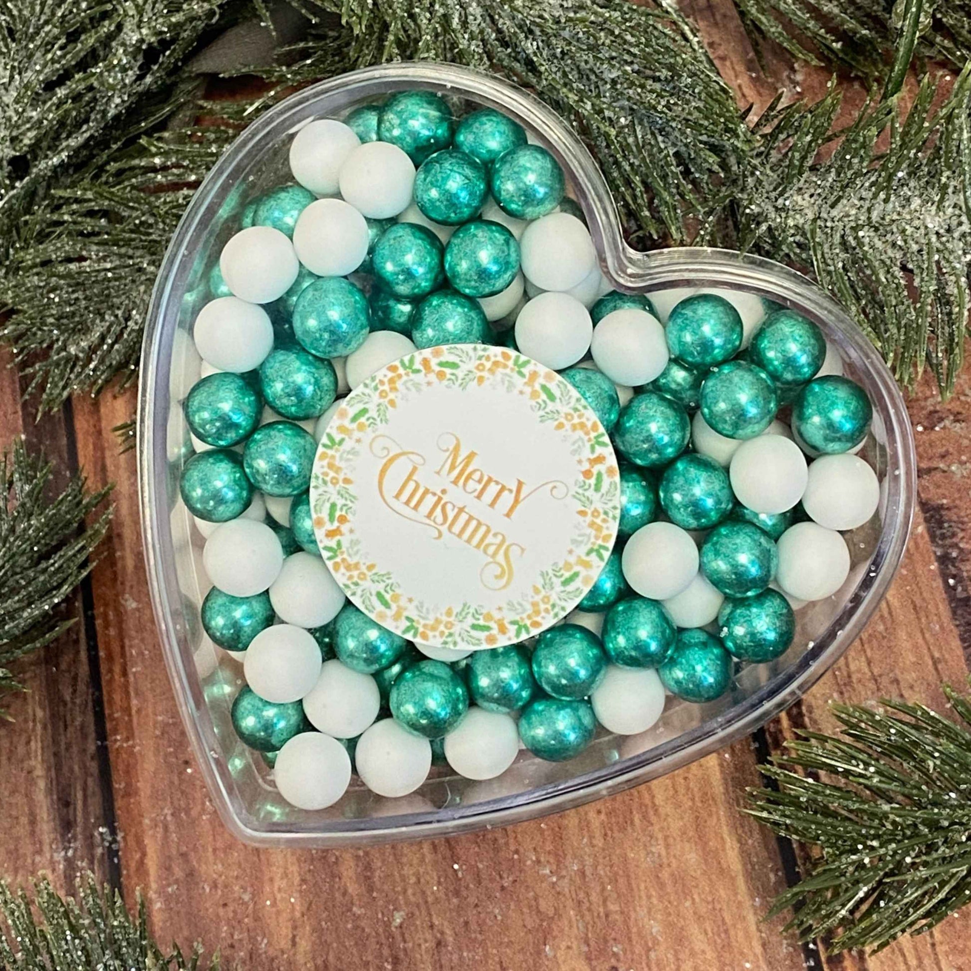 0,14kg Schokolade Weihnachts-Herz Weihnachtsgeschenk "Merry Christmas" weiss-grün