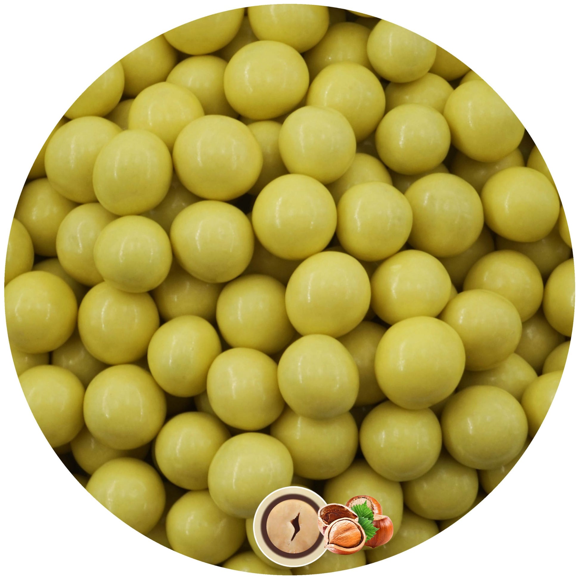 Unsere glänzenden Schokobälle in strahlendem Gelb bringen Farbe und Eleganz auf jede Feier. Im Inneren erwartet dich eine geröstete Haselnuss, umhüllt von zartschmelzender weißer und dunkler Schokolade. Ideal als Gastgeschenke, zum Dekorieren oder einfach zum Genießen.