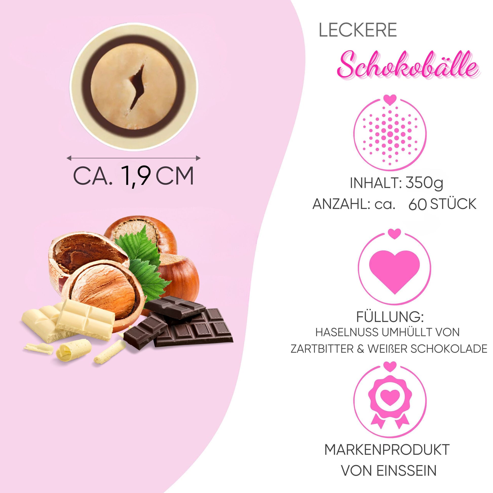 EinsSein Schokobälle Rot Glanz 0,35 kg | Haselnuss in weißer & dunkler Schokolade | ca. 60 Stück (1,9 cm)