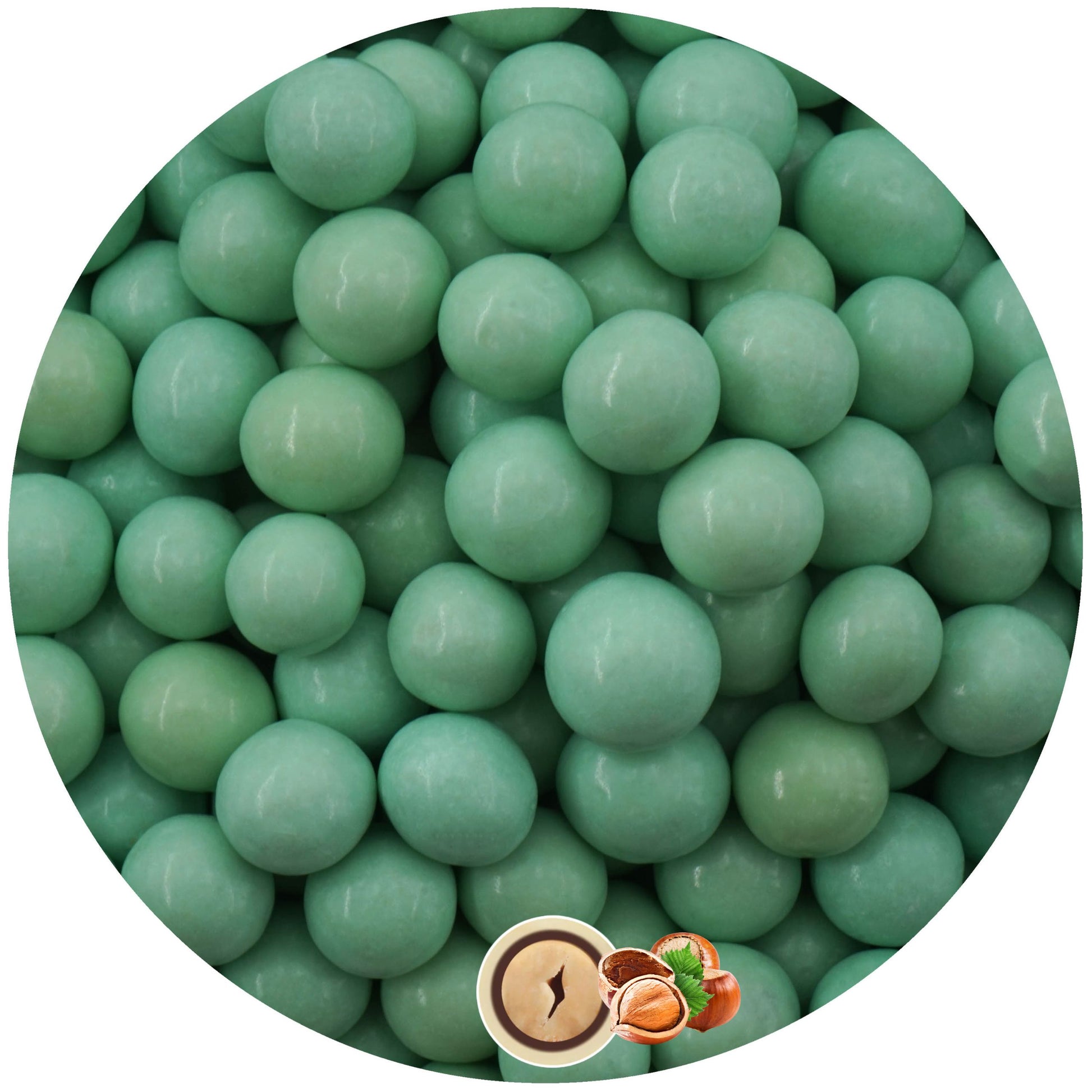 Unsere glänzenden Schokobälle in edlem Türkis vereinen das Beste aus zwei Welten: Eine geröstete Haselnuss im Inneren trifft auf eine Hülle aus weißer und dunkler Schokolade. Die leuchtende, moderne Farbgebung macht sie zu einem besonderen Blickfang – ideal als Gastgeschenke, Candybar-Highlight oder süßer Gruß.