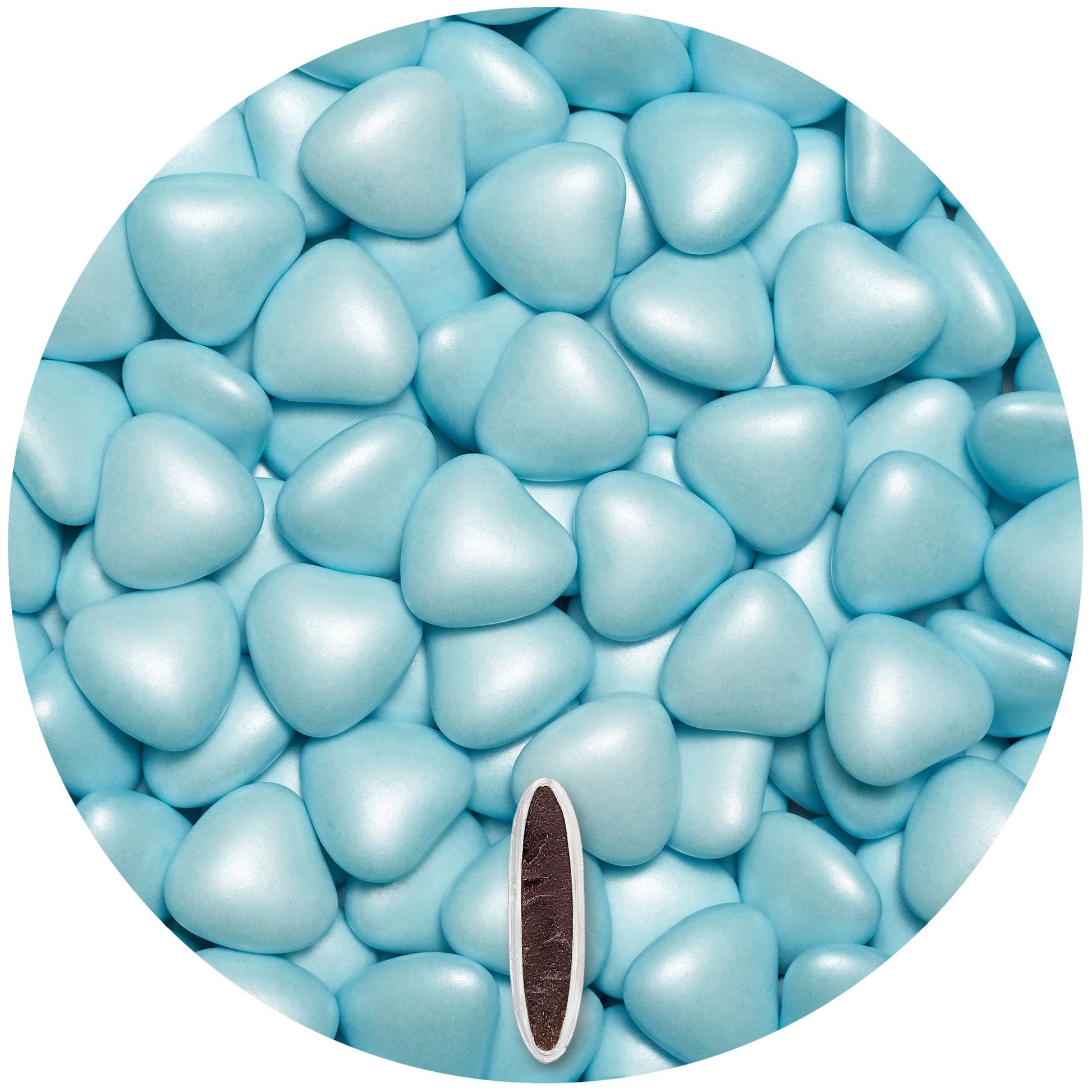 0,5kg Schokoherzen Dragees medium hellblau pearl