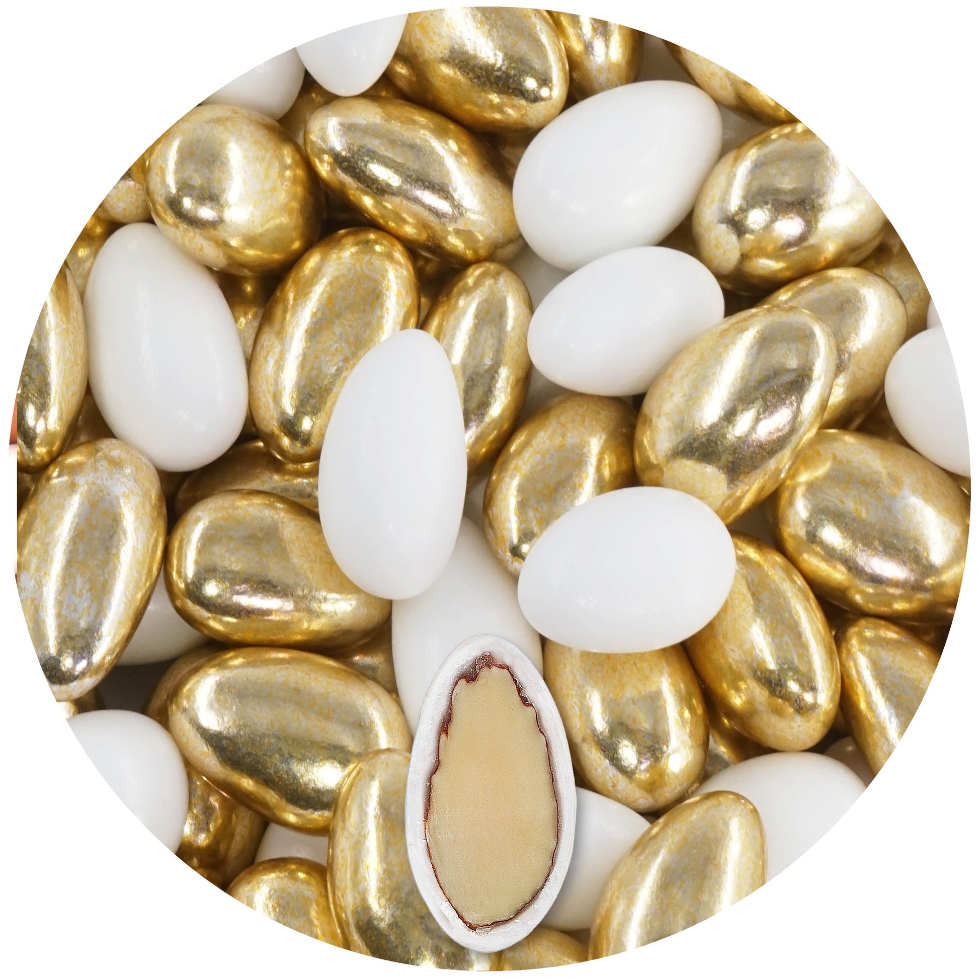 EinsSein 1 kg Hochzeitsmandeln Conchiglia weiß-gold glanz (vegetarisch)