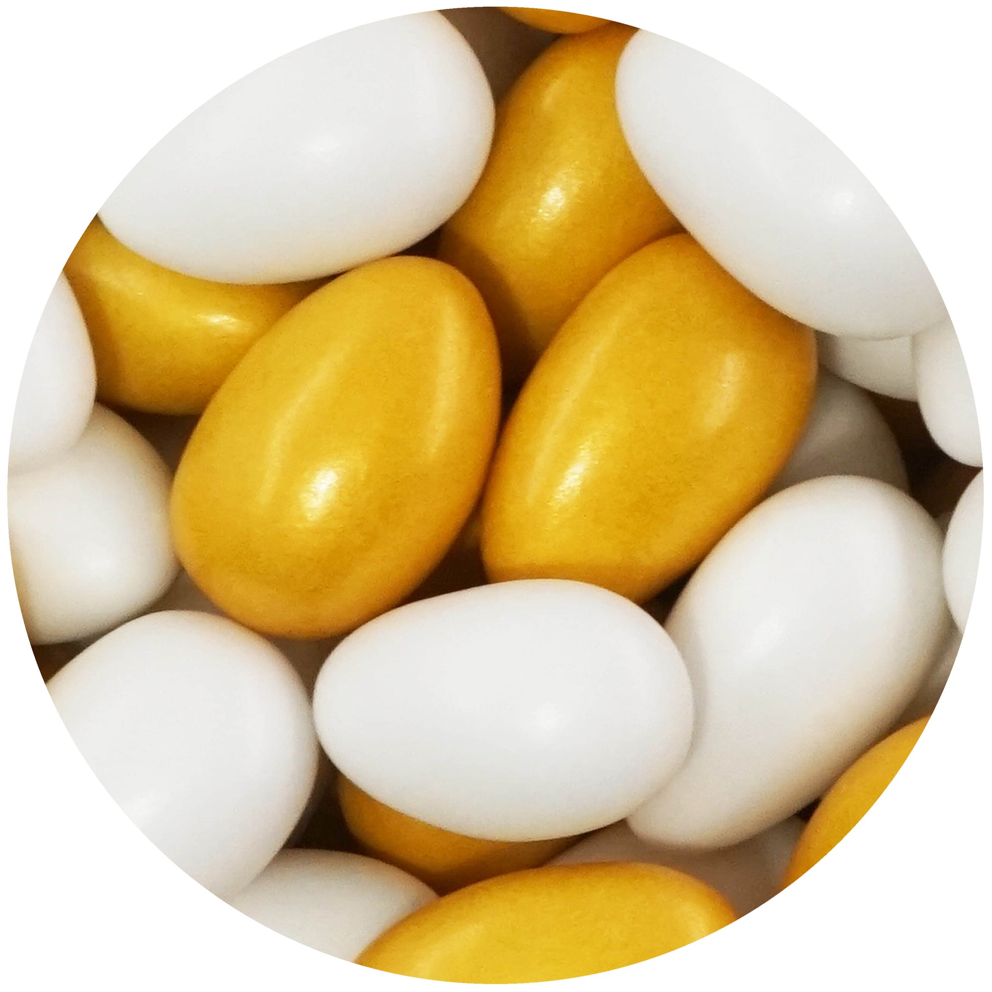 EinsSein 1 kg Hochzeitsmandeln Conchiglia weiß-gold metallic (vegetarisch)