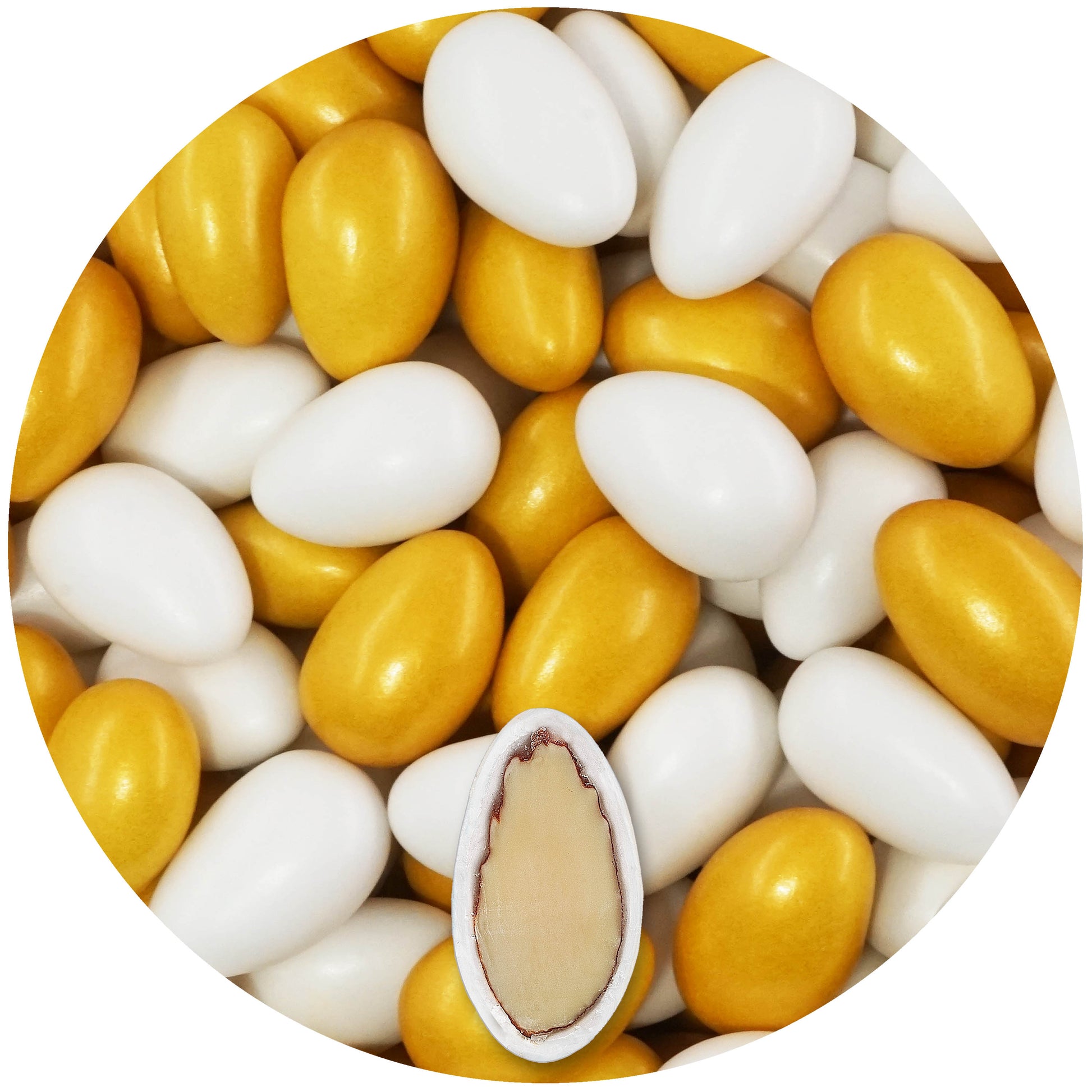 Unsere goldschimmernden Zuckermandeln vereinen italienische Confetti-Kunst mit exklusivem Design. Geröstete Mandeln mit fein abgestimmter Zuckerhülle – ein Genuss für Augen und Sinne, liebevoll gefertigt für unvergessliche Augenblicke.