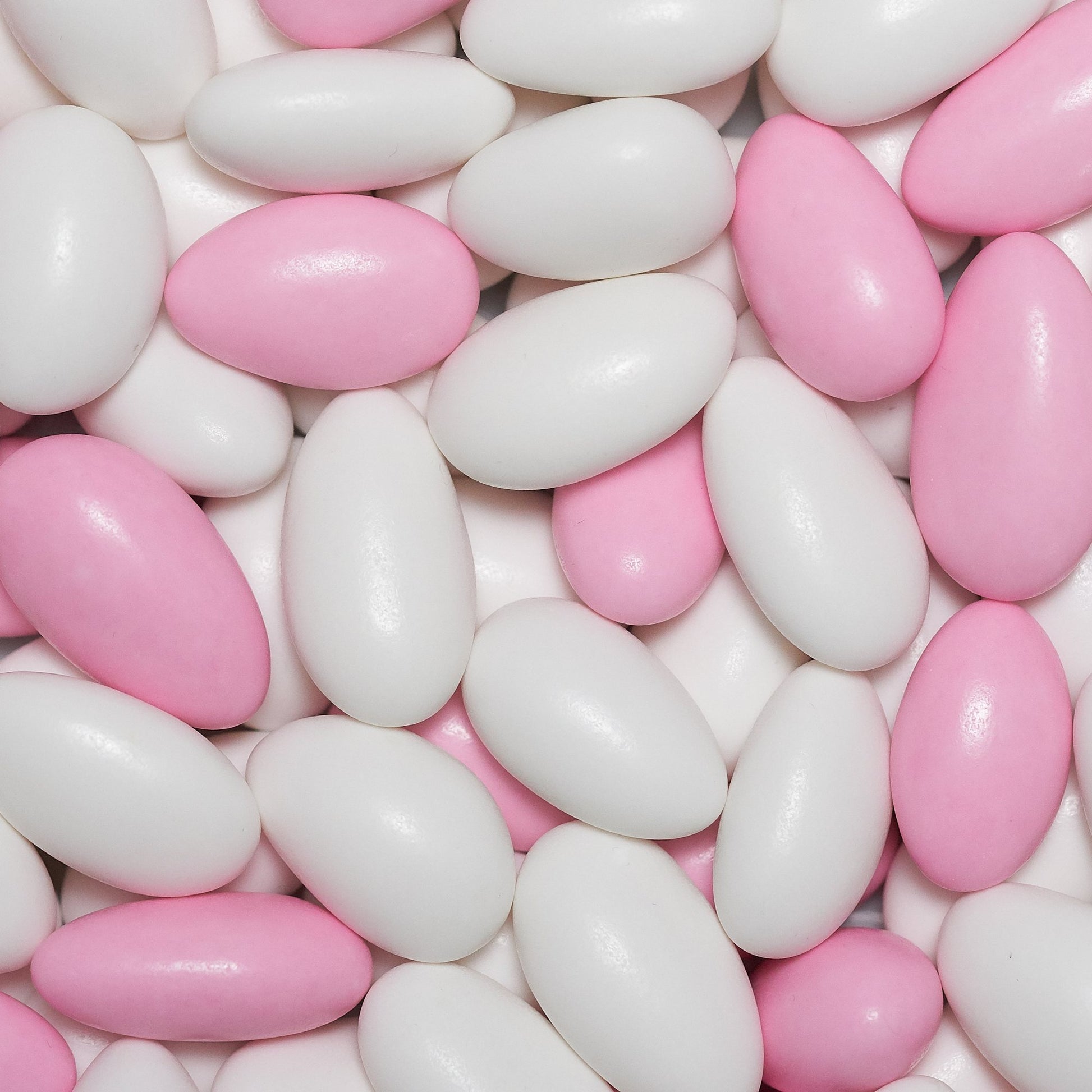 Diese glänzenden Hochzeitsmandeln in Weiß und Rosa vereinen feinen Geschmack mit stilvoller Optik – perfekt für emotionale und festliche Anlässe. Ideal als Hochzeitsmandeln, Taufmandeln oder hochwertige Gastgeschenke für: