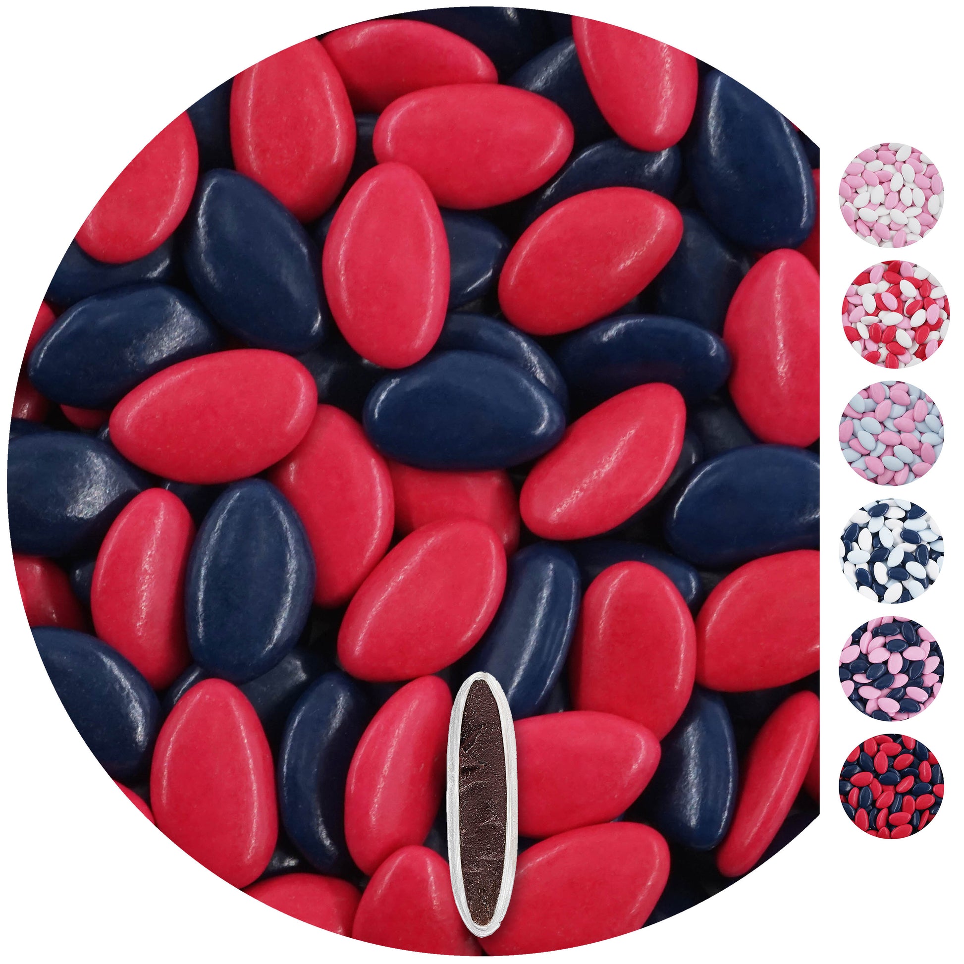 Diese edlen Schokodragees in Pink und Dunkelblau setzen ein stilvolles Farbstatement auf jeder Feier. Mit einem Kern aus feinherber Zartbitterschokolade und einer glänzenden Zuckerhülle sind sie nicht nur optisch ein Highlight, sondern auch geschmacklich ein Genuss – ideal für Gastgeschenke, die Candybar oder den Sweet Table.