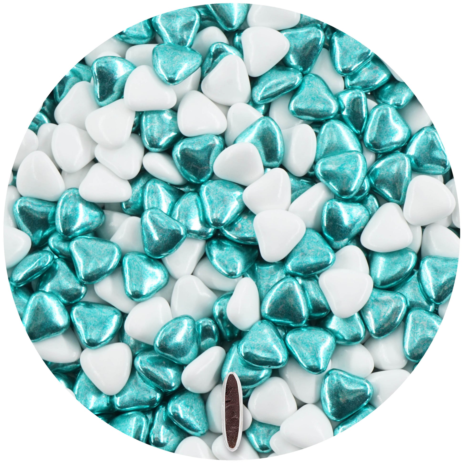 1kg Schokoherzen Dragees Herz Mix small weiss-grün metallic glanz