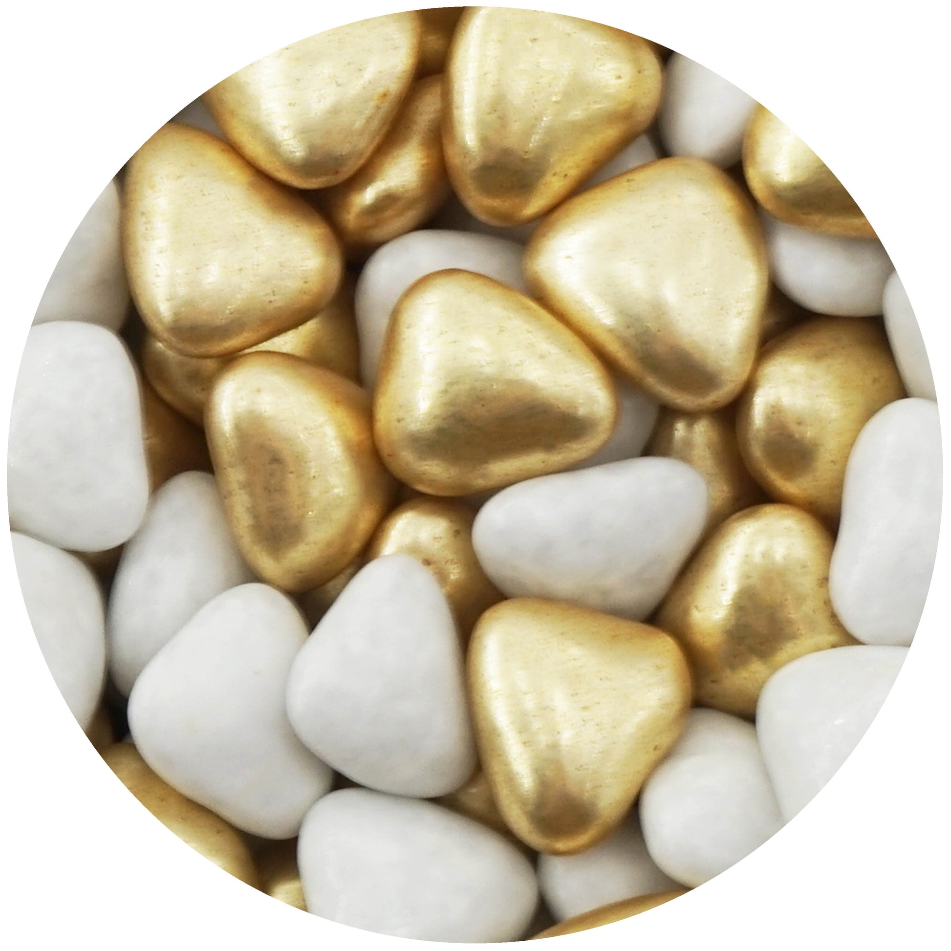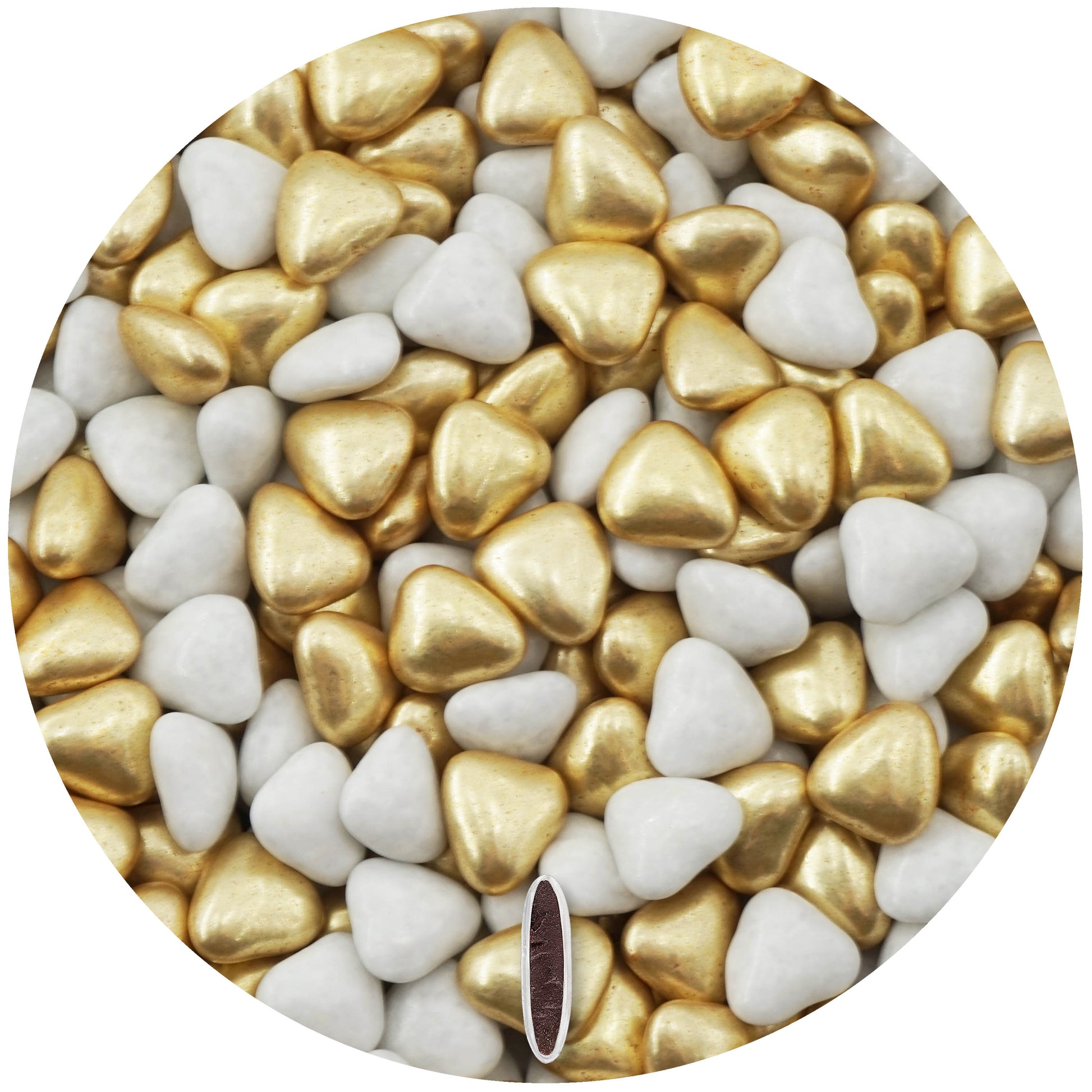 1kg Schokoherzen Dragees Herz Mix small weiss-gold glanz