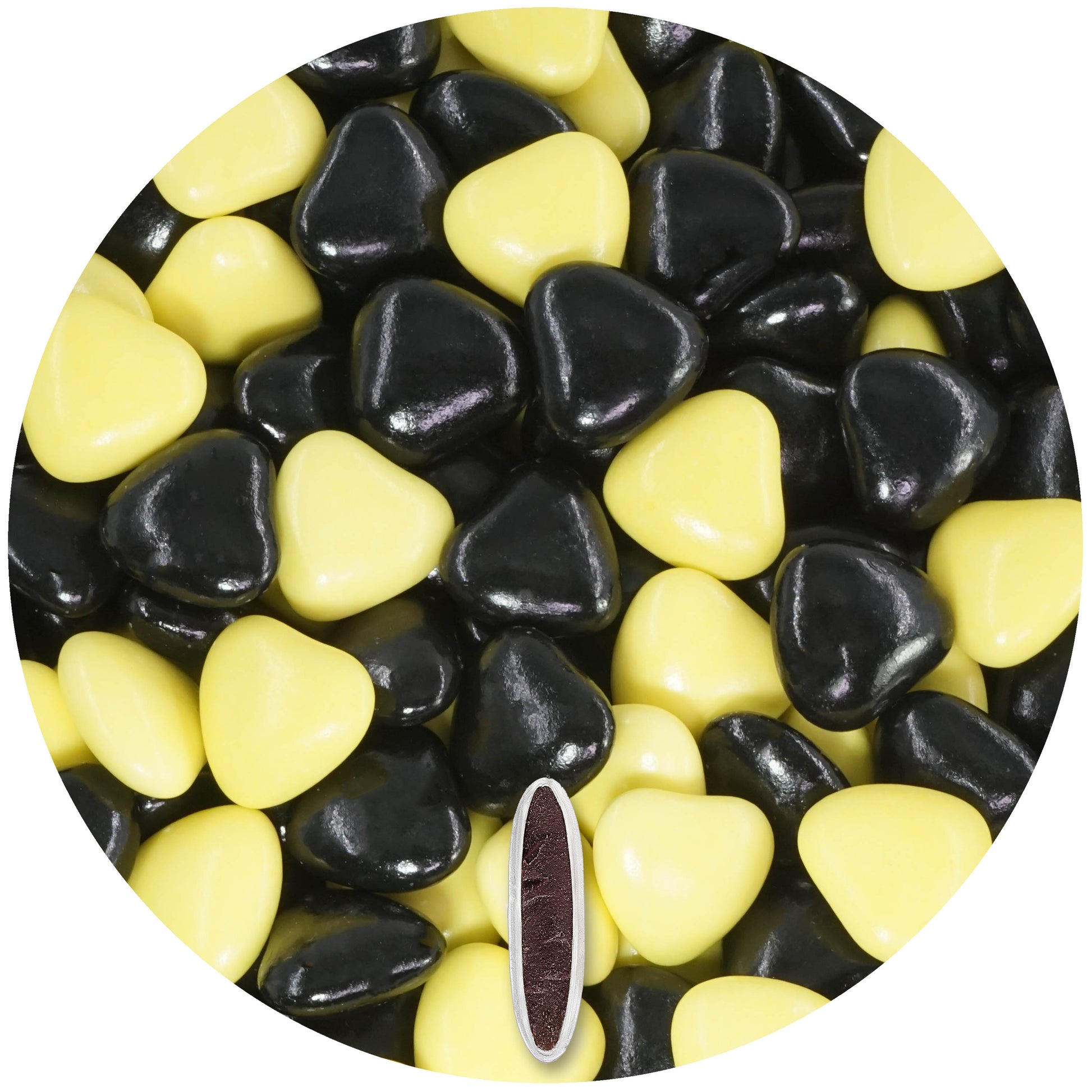 1kg Schokoherzen Dragees Mix medium gelb-schwarz glanz