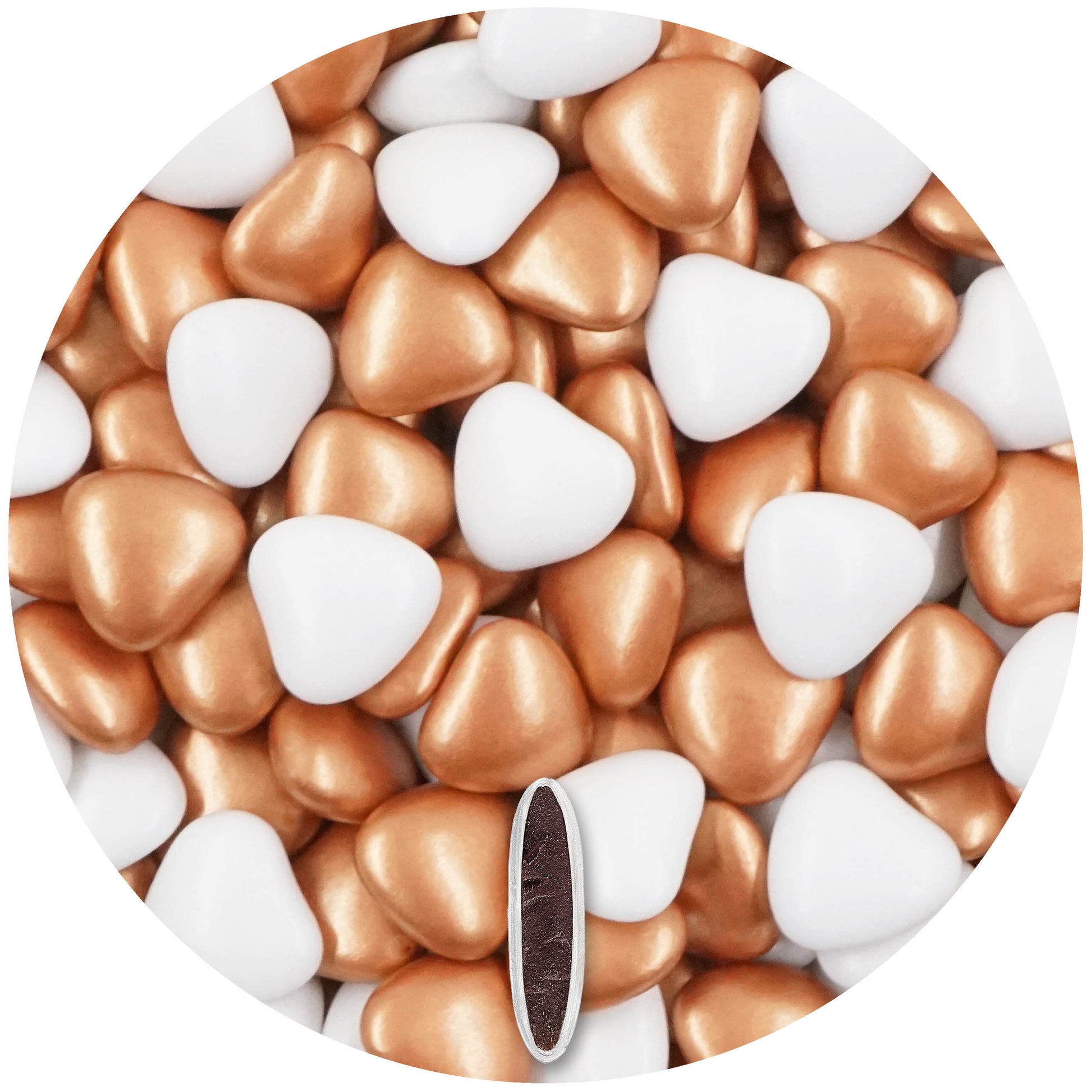 1kg Schokoherzen Dragees Mix medium weiss-bronzegold pearl