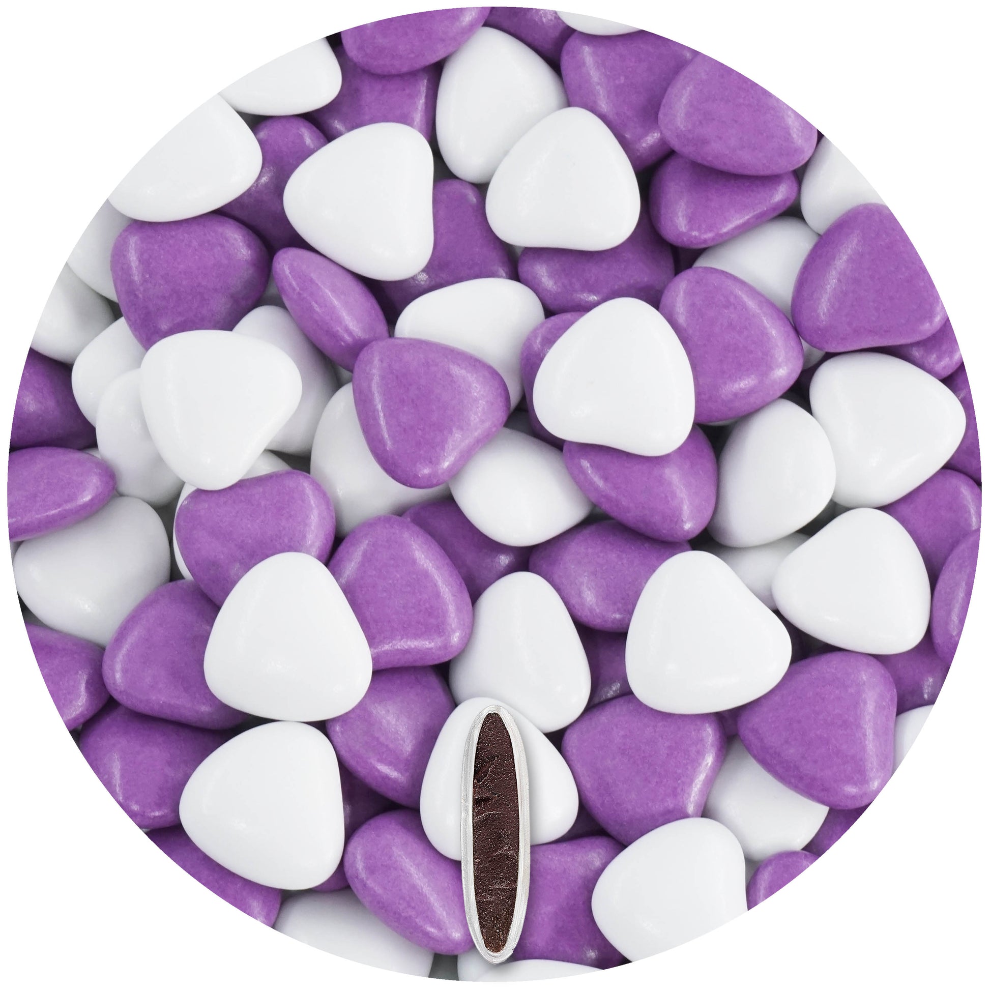 1kg Schokoherzen Dragees Mix medium weiss-lila glanz