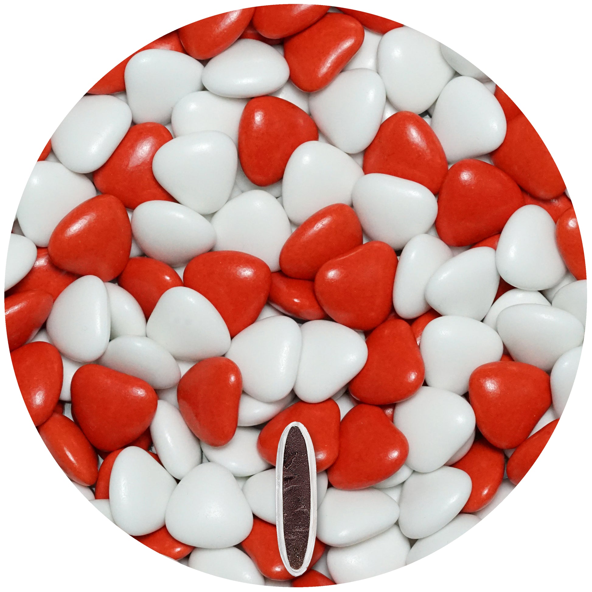 1kg Schokoherzen Dragees Mix medium weiss-rot glanz