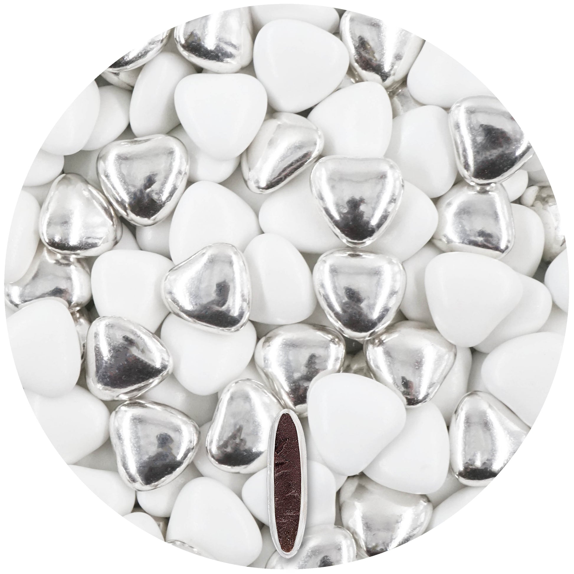 1kg Schokoherzen Dragees Mix medium weiss-silber glanz