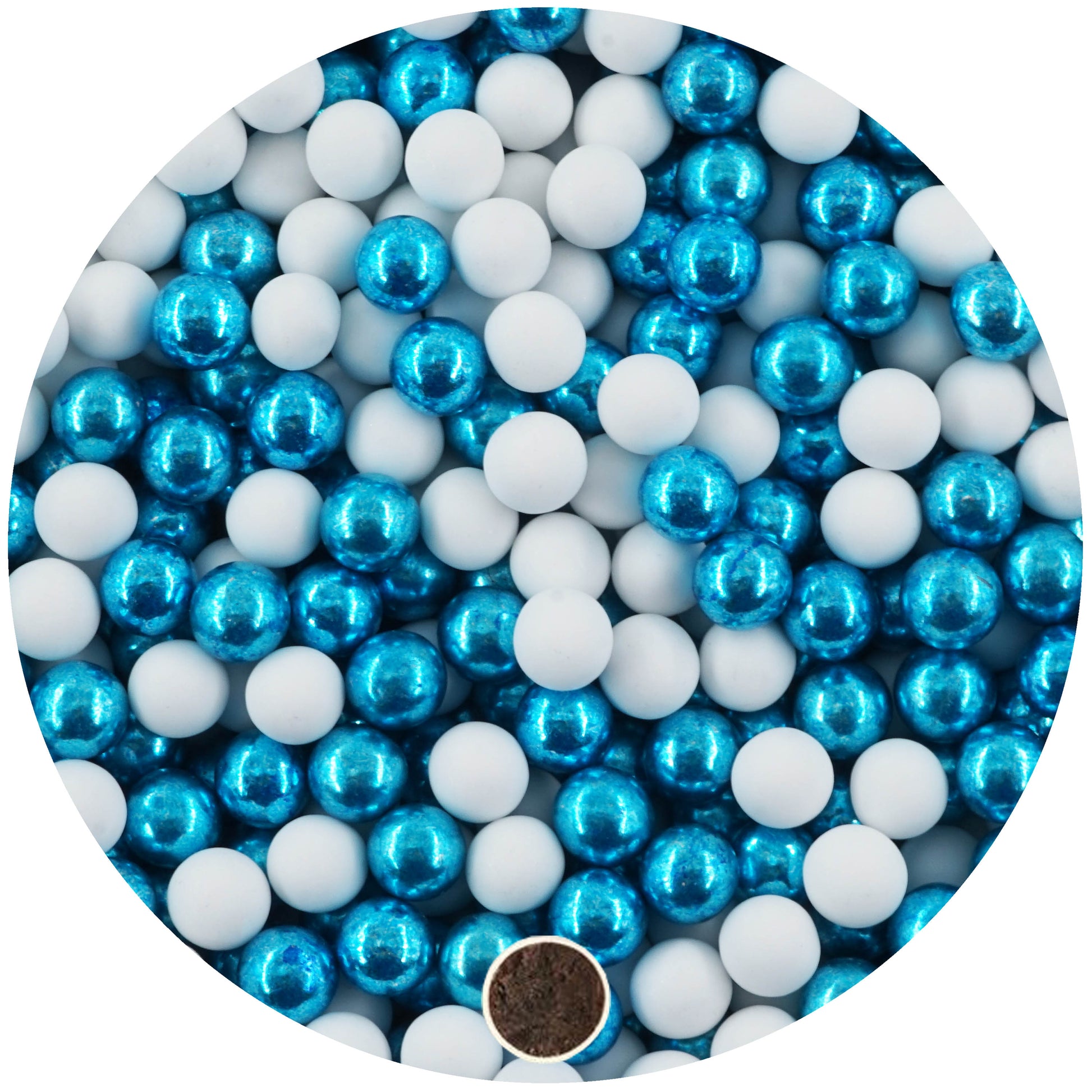 1kg Schokokugeln Mix mini weiss-blau metallic 1 cm