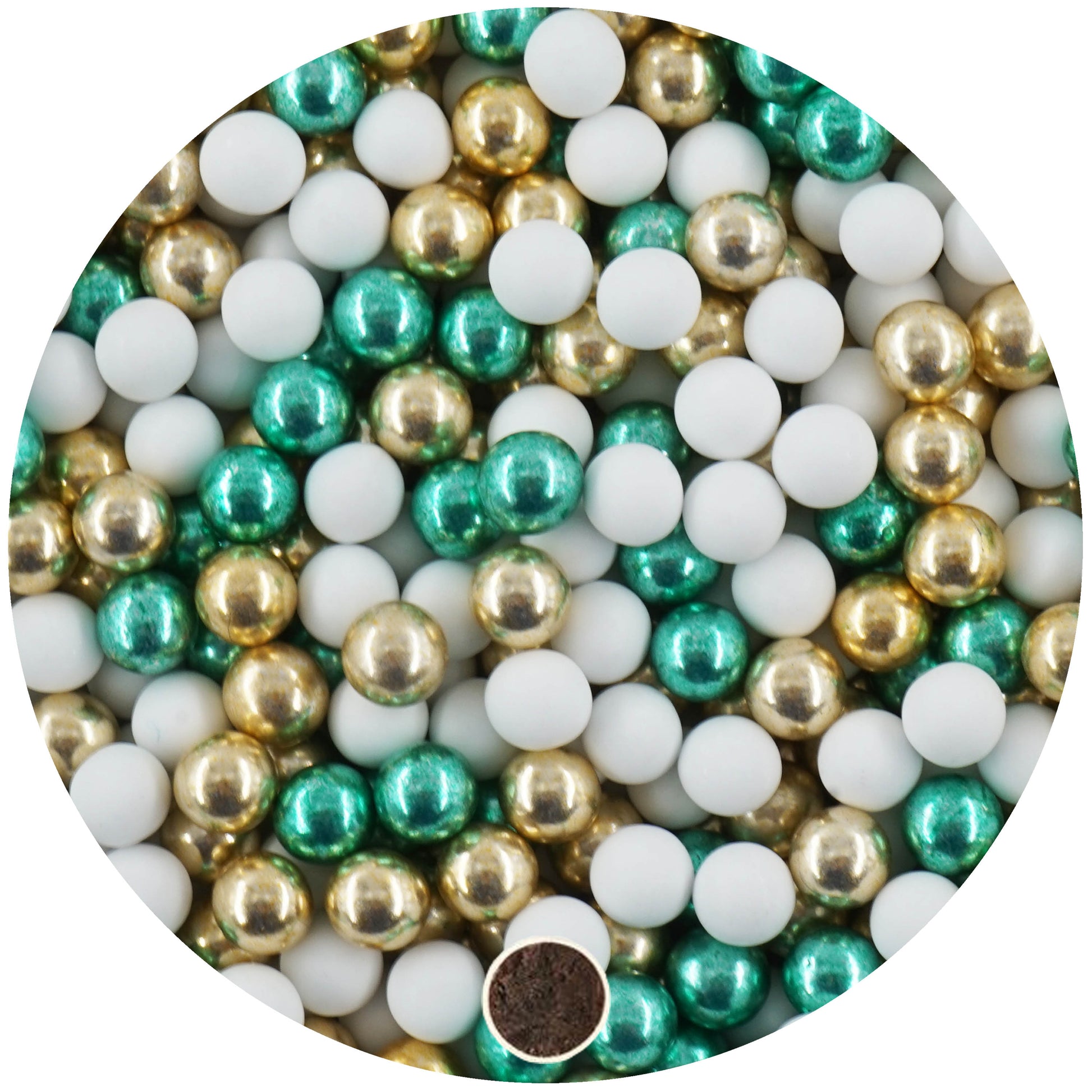1kg Schokokugeln Mix mini weiss-gold-grün metallic 1 cm