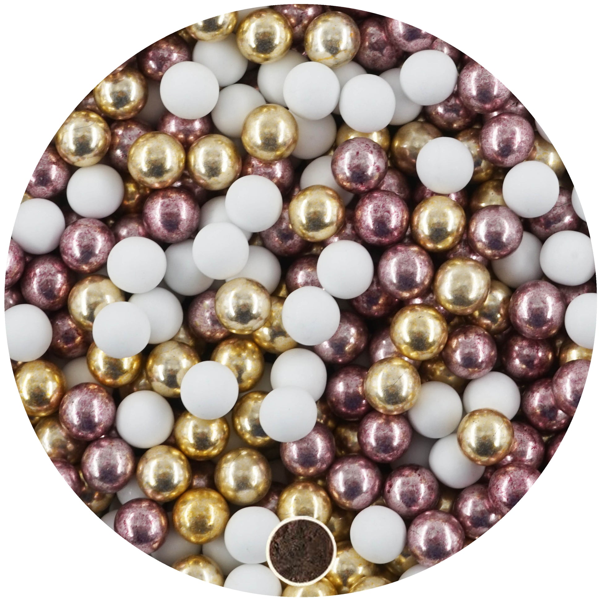 1kg Schokokugeln Mix mini weiss-gold-rosa metallic 1 cm