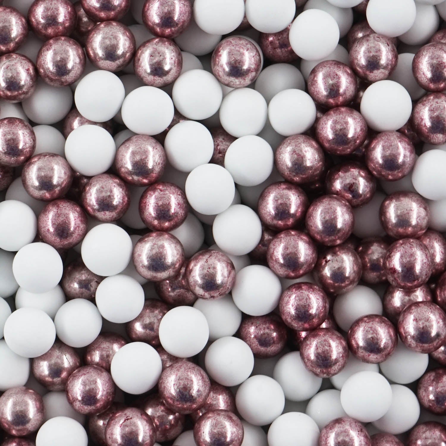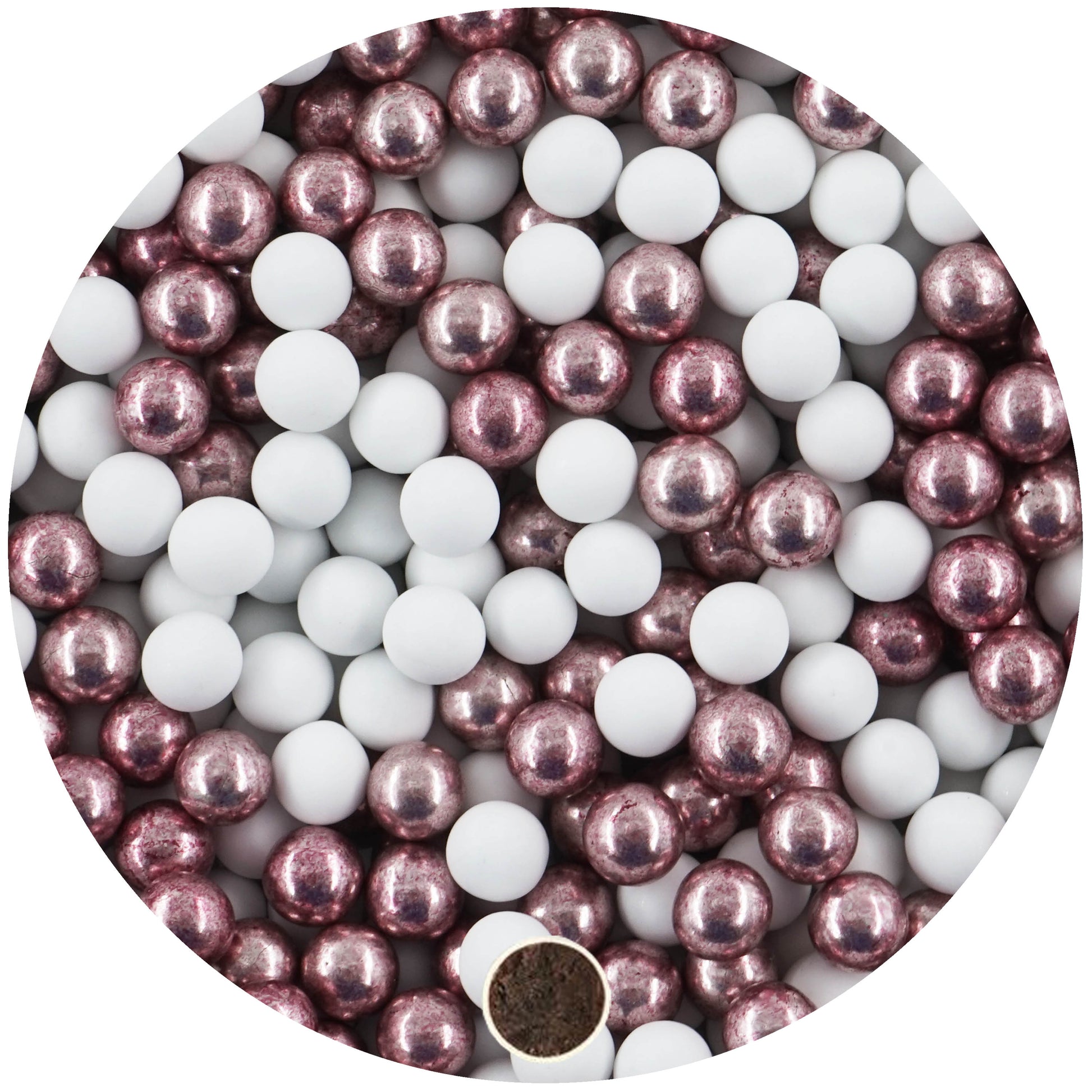 1kg Schokokugeln Mix mini weiss-rosa metallic 1 cm