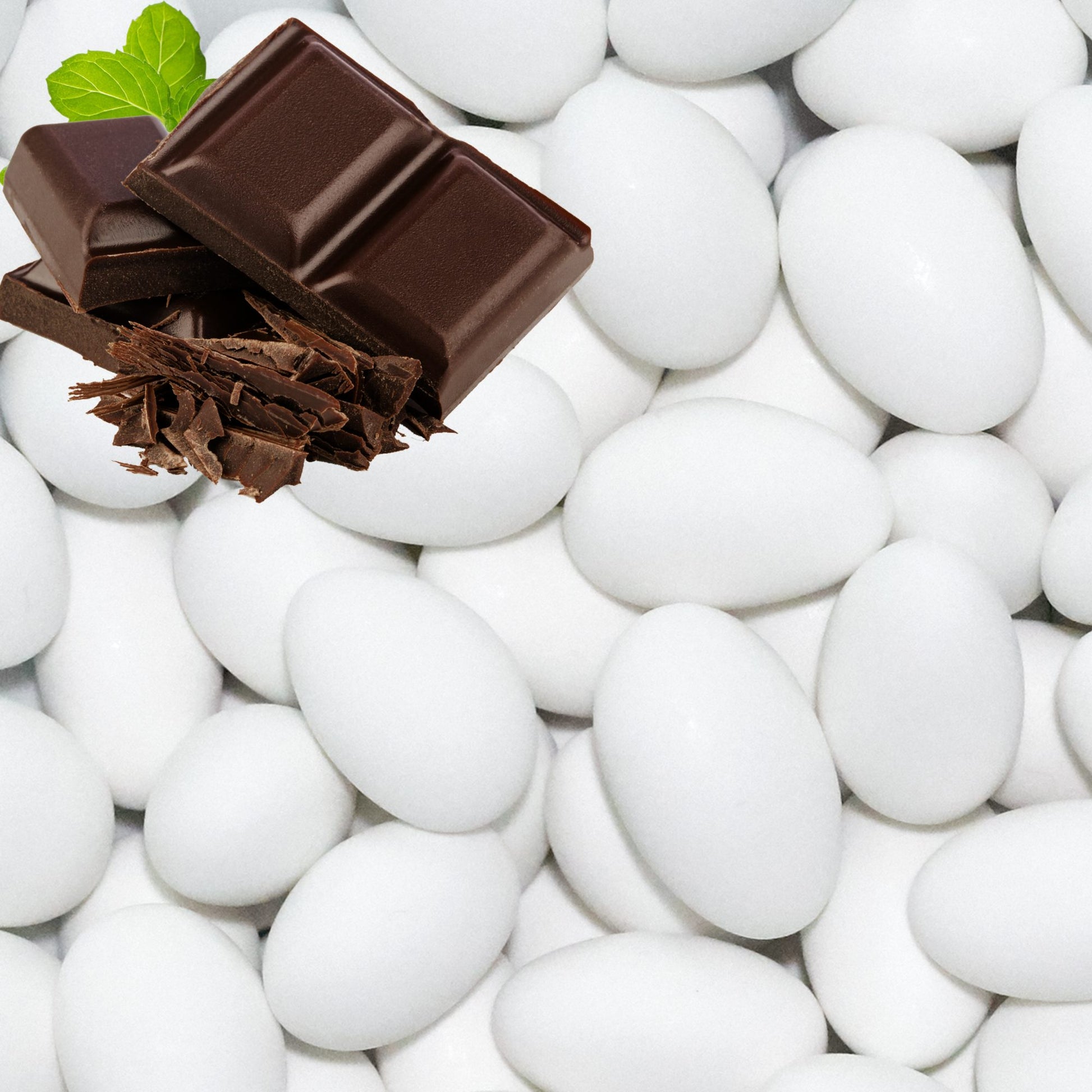 Diese Schokomandeln mit feiner Zartbitterschokolade in klassischem Weiß matt verbinden den intensiven Geschmack dunkler Schokolade mit der feinen Knusprigkeit einer gerösteten Mandel. Die zartschmelzende Hülle macht sie zu einem besonderen Genuss – ideal als Hochzeitsmandeln, Taufmandeln oder stilvolle Gastgeschenke für: