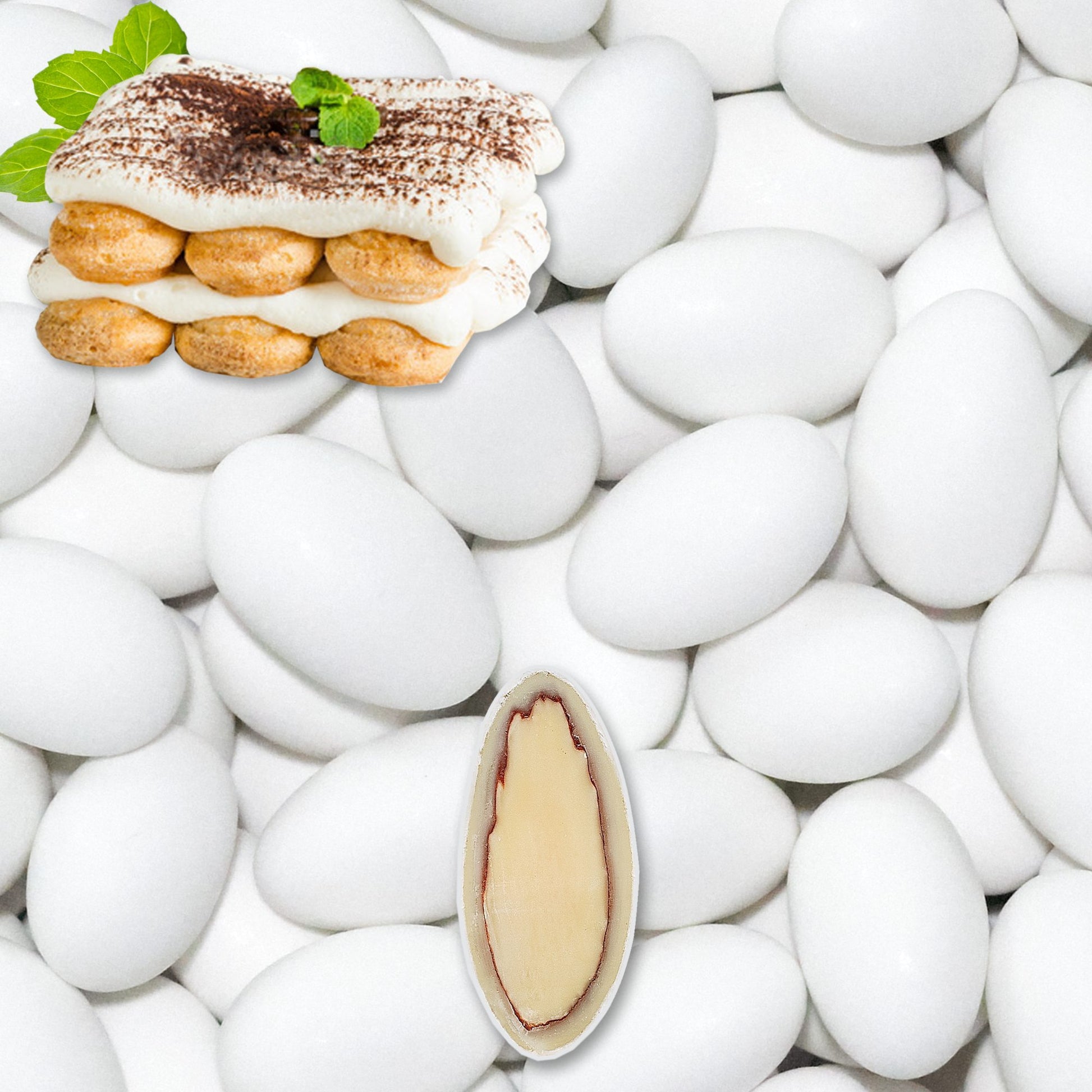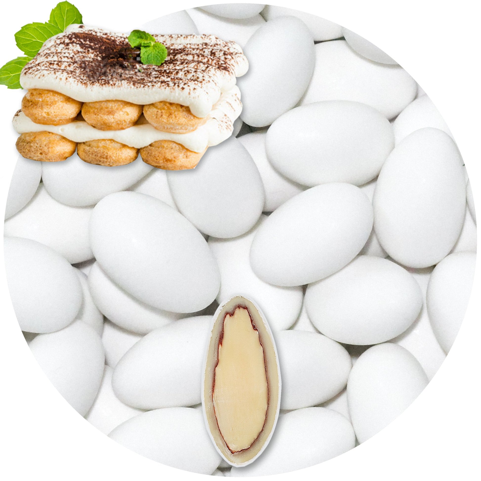 Diese feinen Schokomandeln mit Tiramisu-Geschmack in stilvollem Weiß matt vereinen italienische Dessertkunst mit festlicher Eleganz. Eine geröstete Mandel, umhüllt von cremiger Tiramisu-Schokolade und zarter Zuckerhülle – perfekt als Hochzeitsmandeln, Taufmandeln oder liebevolle Gastgeschenke für:
