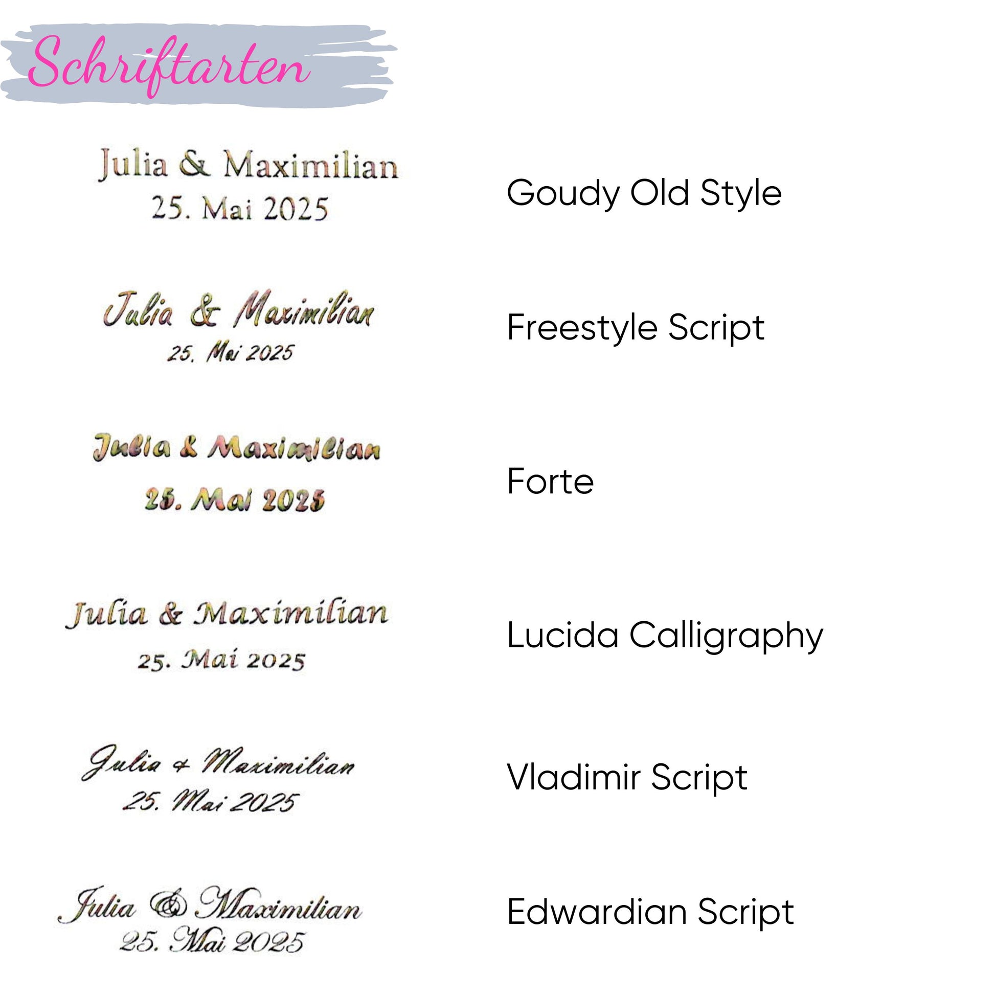 Wähle deine Wunsch-Schriftart und Farbe: