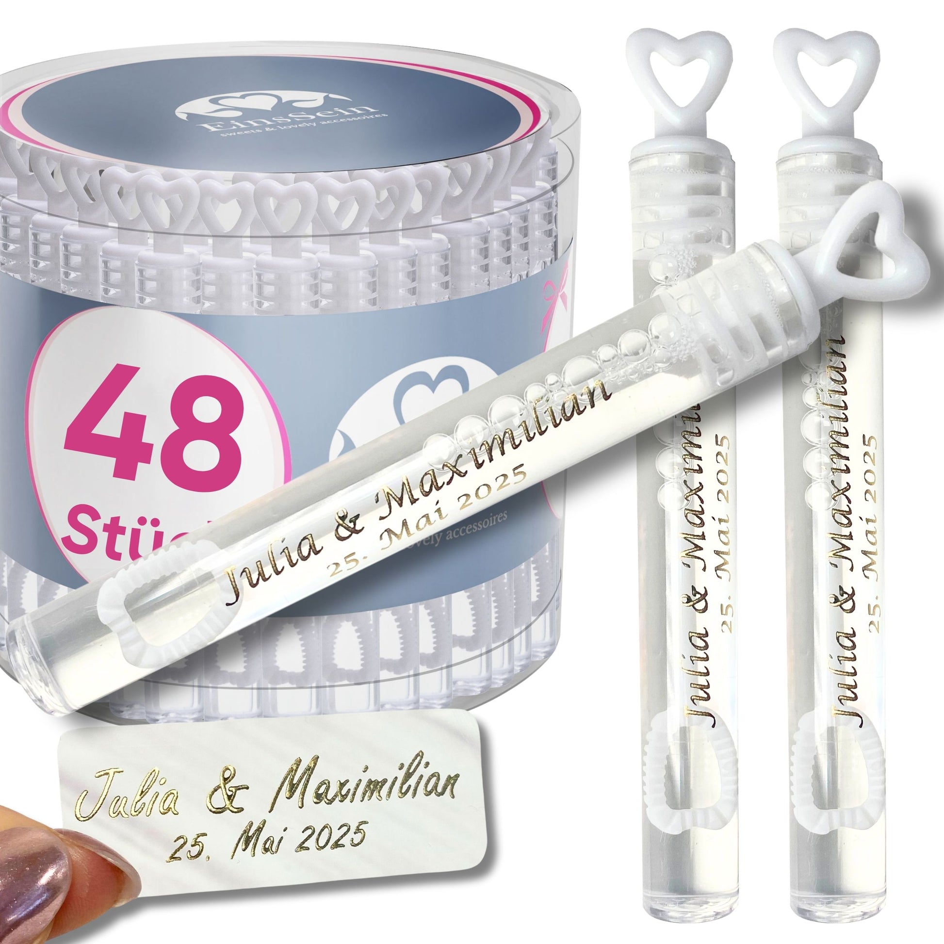 💖 Personalisierte Seifenblasen Herzgläschen – 48 Stück von EinsSein
